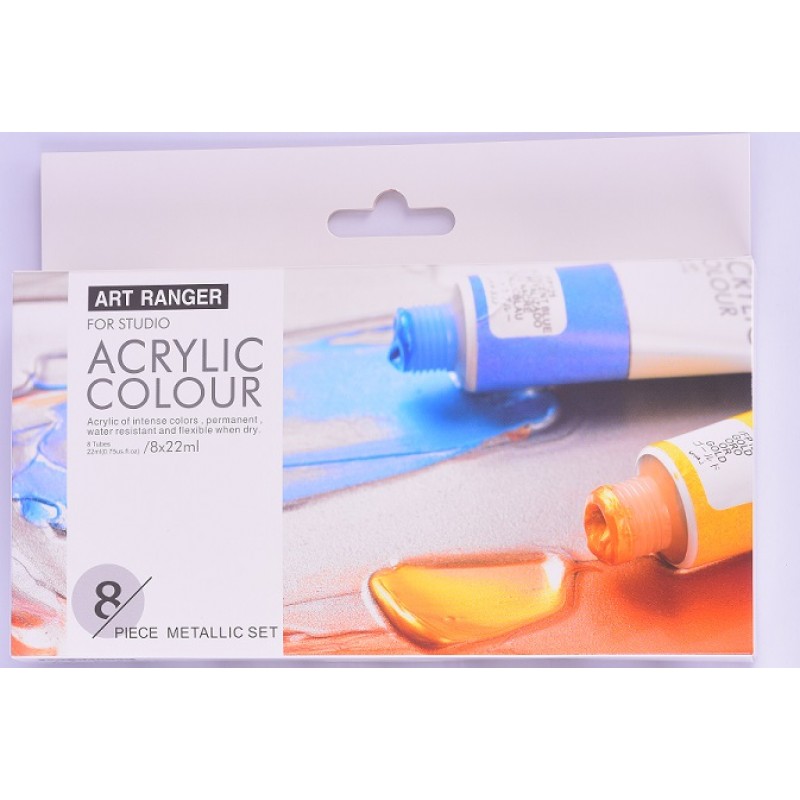Art Ranger Brand Acrylic Paint Set 8x22ml (Metallic Colours)