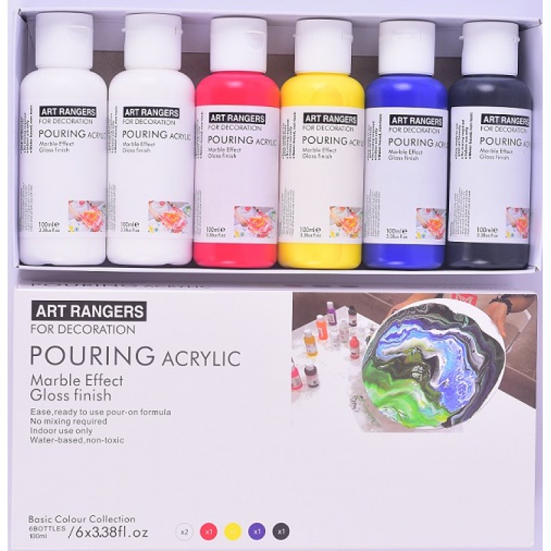 Art Ranger Brand Pouring Acrylic Set of 6x100ml ( Regular Colours )