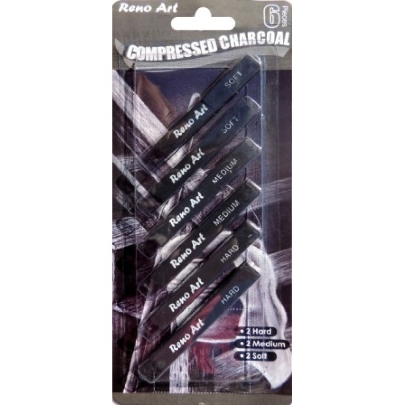 Compressed Charcoal 6pcs ( 2 Hand, 2 Medium, 2 Soft )