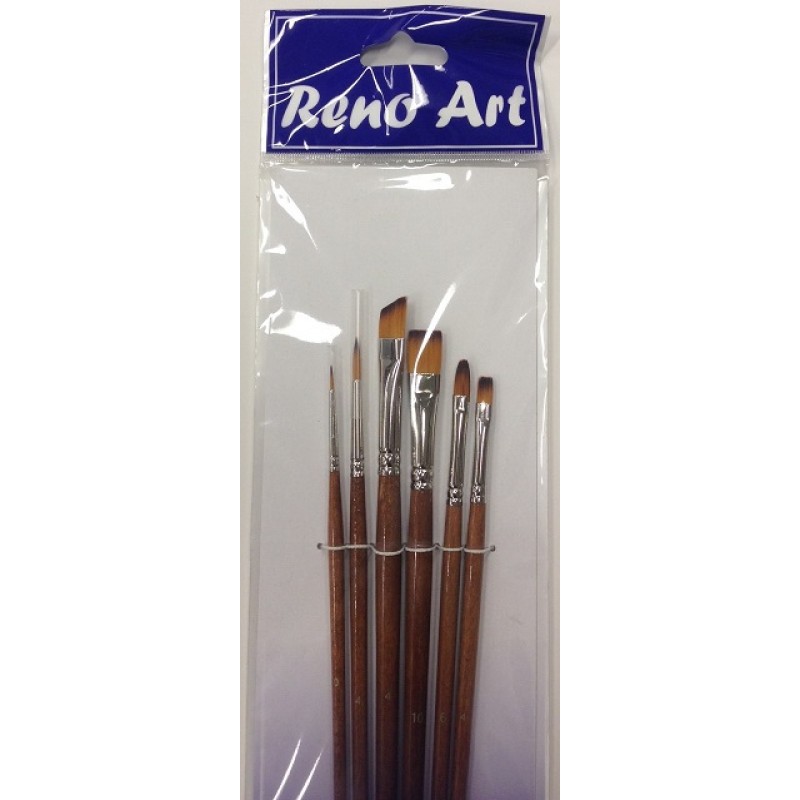 Golden synthetic with brown tip, brass ferrule (Pack A), 6 pcs set